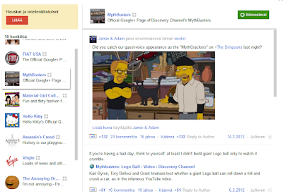 Kirjoitin aiheesta postauksen englanniksi ja sain kuin sainkin haukut niskaan, tosin 'vanhoilta konkareilta' joista kukaan ei kyllä ole piireissäni tai edes tunne kirjoitustyyliäni, saatikka aiheitani. Eniten heitä tuntui ärsyttävän se, että otin kantaa G+ "julkkisten" satoihin mitäänsanomattomiin yksitavuisiin täytelmiin. He tuntuvat olevan vapaata riistaa: Robert Scoble, Guy Kawasaki, Christina Trapolino ja muut.